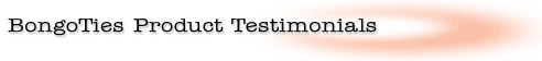 - "I just used Bongo Ties to secure a prop for a televised puppet presentation I did for an international conference in Newport Beach! They worked great!"